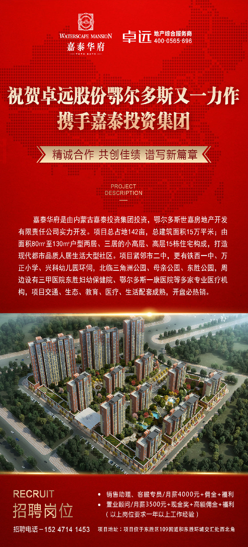 祝賀卓遠(yuǎn)股份鄂爾多斯又一力作攜手嘉泰投資集團,精誠合作,共創(chuàng)佳績,譜寫新篇章。