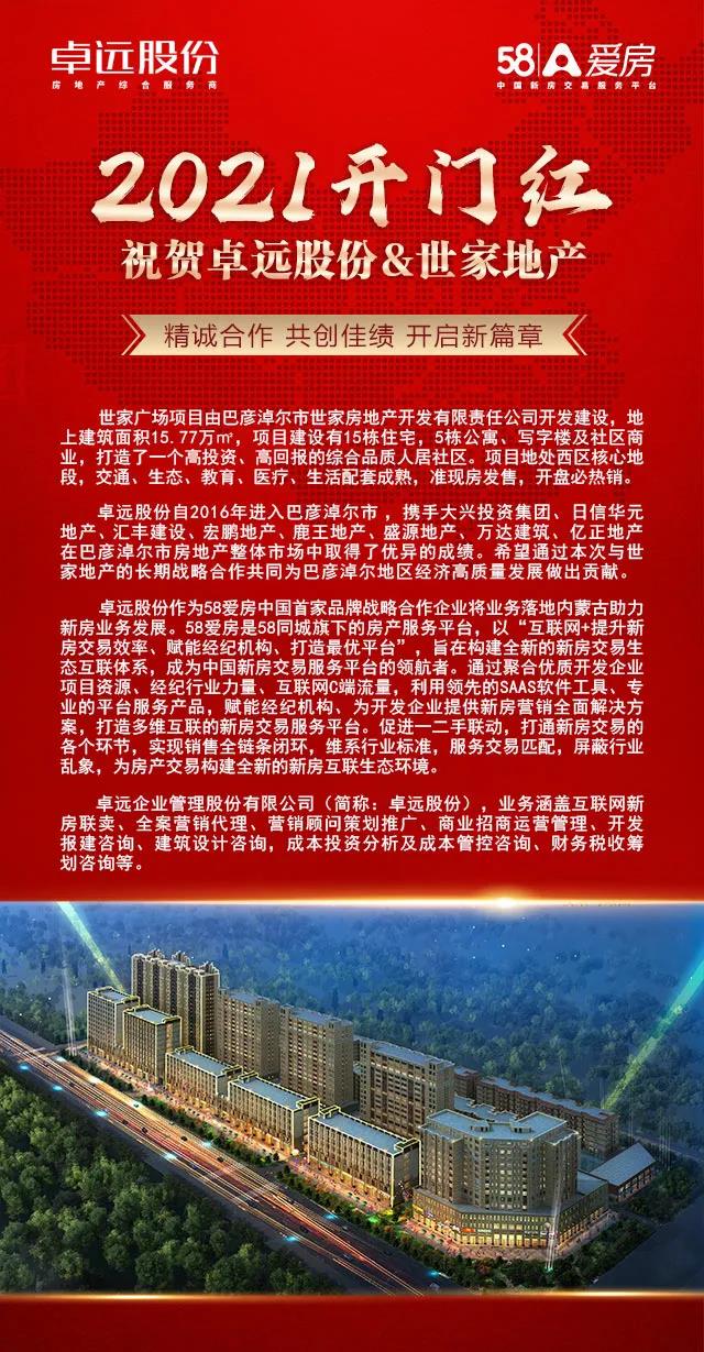 卓遠(yuǎn)股份自2016年進(jìn)入巴彥淖爾市,攜手大興投資集團(tuán)、日信華元地產(chǎn)、匯豐建設(shè)、宏鵬地產(chǎn)、鹿王地產(chǎn)、盛源地產(chǎn)、萬(wàn)達(dá)建筑、億正地產(chǎn)在巴彥淖爾市房地產(chǎn)整體市場(chǎng)中脫穎而出,取得了優(yōu)異的成績(jī)。希望通過(guò)本次與世家地產(chǎn)的長(zhǎng)期戰(zhàn)略合作共同為巴彥淖爾地區(qū)經(jīng)濟(jì)高質(zhì)量發(fā)展做出貢獻(xiàn)。
